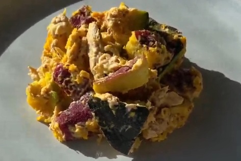 ビタミンC やE、β - カロテンといった抗酸化ビタミンがたっぷり!さらに、吸収効率を上げる脂質も取り入れたバランスのよい、デリ風美味しい卵質ケアサラダです。たんぱく質も一緒に摂れます!